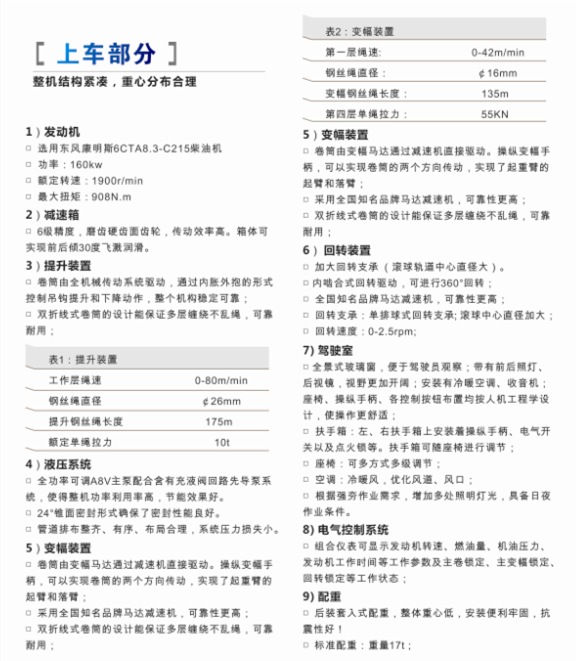 提高結構件強度、加快傳動部件效率、高效節能液壓系統可靠性高。 主卷揚提升機構采用機械傳動,行走、回轉、變幅及履帶伸縮采用液壓傳動。
