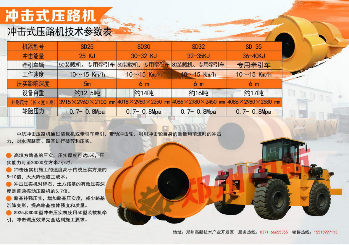 鄭州中航主營產品:沖擊壓路機,裝載機,液壓夯實機,沖擊碾壓,垃圾壓實機,輪式推土機-銷售熱線:15515997113
