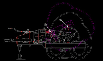 舉升油缸和擺架支架之間增加了一個鉸接裝置,擺架的張合帶動的鉸接裝置,這種設計是非常合理的,沖擊式壓路機在工作時,舉升油缸實際是相對靜止的,同樣也不會對油路系統產生作用,而且,通過這種活性鉸接架,機架就相當于多了一個支點,在縱向與橫向對機架都多了一個束管功效,進而增加了機架的穩定性與使用壽命。