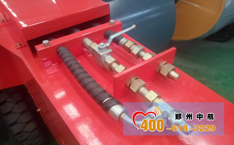 我們在沖擊碾壓輪的油路系統上加有前后壓、卡雙層油路防護,預防因劇烈顛簸接頭松動造成的泄壓,以及油管扯脫甚至扯斷后,整個油路報廢現象。