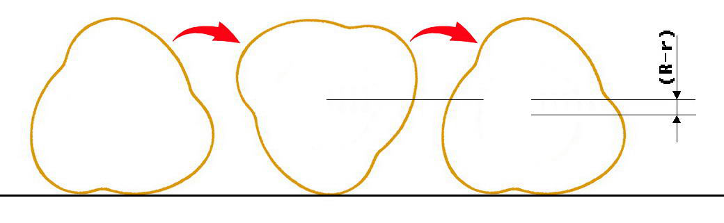 沖擊壓路機自身沒有動力,是通過前面的牽引裝置進行牽引,從而來進行工作。沖擊式壓路機沖擊碾壓輪滾動時,其質心上下擺動,完成蓄能、釋放、沖擊 3 個過程,以產生的勢能和動能聯合作用于地面。利用多邊形滾輪的大小半徑產生位能落差與行駛的動能相結合沿地面對土石材料進行靜壓、搓揉、沖擊的連續沖擊碾壓作業,形成高振幅、低頻率的沖擊壓實原理。所以沖擊壓路機碾壓輪滾動的同時,對牽引裝置有一定的速度要求。